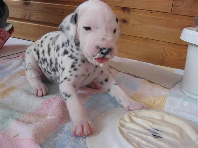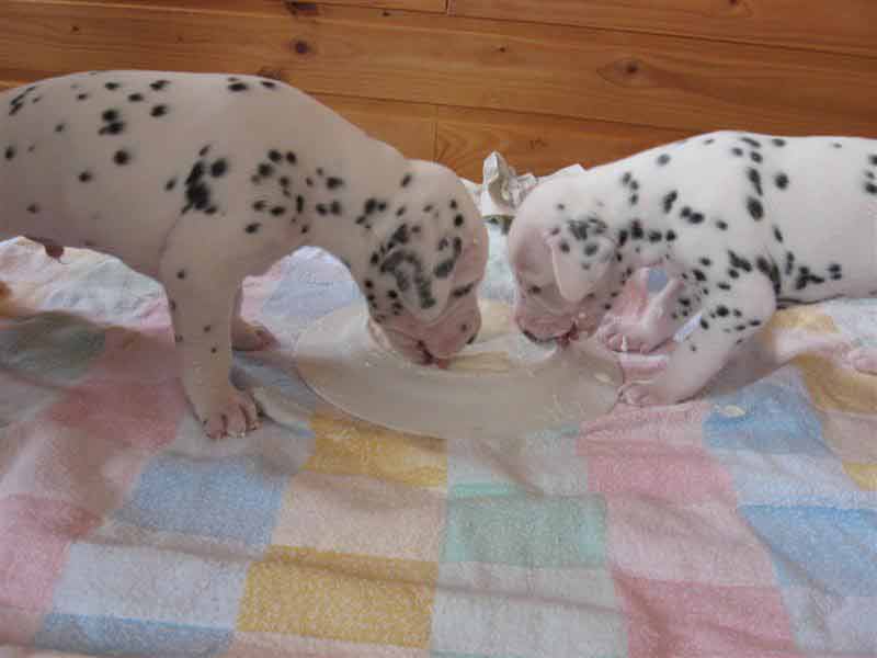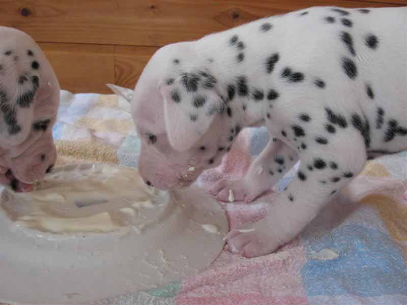 Die Welpen fressen jetzt nicht mehr nur Muttermilch sondern auch schon