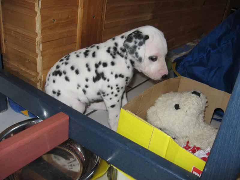 Alle Welpen können hören und reagieren, wenn etwas lärm macht, oder die